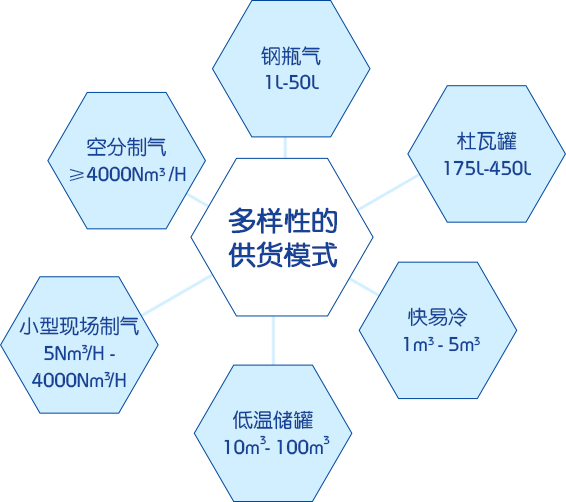 主营产品有液态氧、液态二氧化碳、液态氮气、液态氩气、以及氧气、二氧化碳、氮气、氩气、氢气、氦气、乙炔、丙烷、混合气体、化验室用的各种高纯气体、稀有气体。为实现气瓶的网络化、信息化管理。通过建立了气瓶管理平台并接入山东省气瓶管理系统,对气瓶进行全过程全方位监管。
